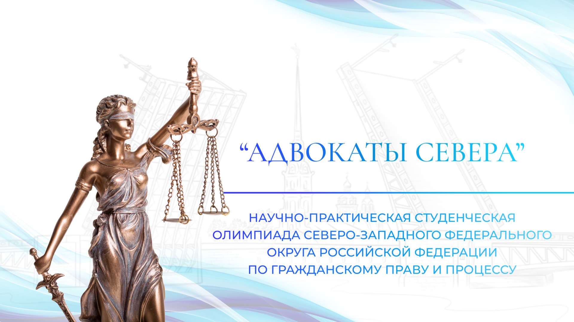 Финал II Научно-практической студенческой олимпиады Северо-Западного федерального округа Российской Федерации по гражданскому праву и процессу «АДВОКАТЫ СЕВЕРА» ⚖️ 28 марта 2026 года в 11:00 лучшие участники встретятся на площадке игрового судебного процесса, чтобы отстоять интересы своего Доверителя.