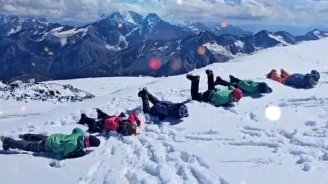 Группа Клуба 7 Вершин «Брусника» на снежно-ледовых тренировочных занятиях на Эльбрусе