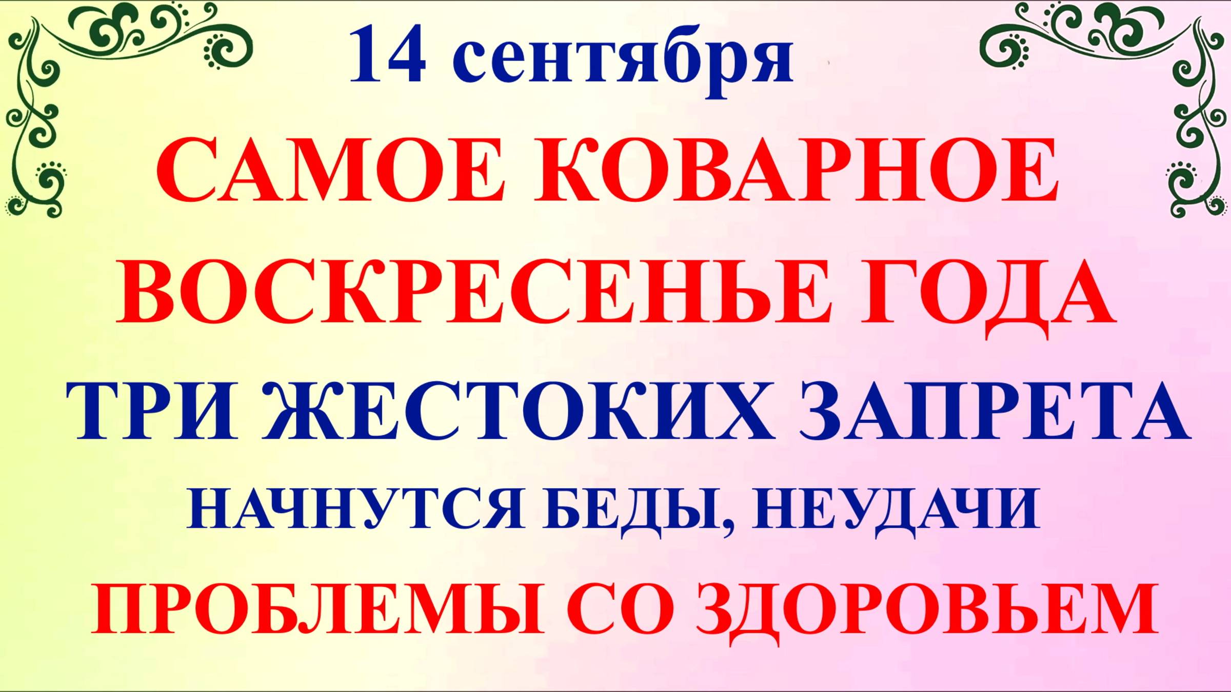 14 сентября народный праздник Семенов День, День Семена. Что нельзя делать 14 сентября. Народные традиции и приметы и суеверия 14 сентября. По церковному календарю 14 сентября праздник чтут память преподобного Симеона Столпника и его матери Марфы Каппадокийской! На 14 сентября праздник приходится Начало индикта – церковное новолетие или Церковный Новый Год. Семенов День или День Семена в 2025 году это воскресенье четырнадцатой Седмицы по пятидесятнице. В народе дату 14 сентября праздник называют Симеон-летопроводец! Название «Летопроводец» пошло от того, что день считается началом бабьего лето, дословно название переводится, как «лето провожающий». Если Вам понравилось народный праздник Семенов День, приметы погоды 14 сентября праздник, какой сегодня праздник отправить по Viber, whats app, а также поделиться в социальных сетях vkontakt, odnoklassniki! Семенов День 14 сентября ссылка на видео на нашем Ютуб канале: https://youtu.be/c9O6lP6yB-c ✅ Подпишитесь на Народные Праздники в Телеграм https://t.me/nprazdniku Благодарю за подписку! Подписывайтесь на канал прямо сейчас!❤️️❤️️❤️️ОБЯЗАТЕЛЬНО нажмите на колокольчик 🔔. Все изображения и музыка в видео используются по лицензии CC0 Creative Commons, так же содержатся видео и фото из личного архива. Благодарю всех за просмотр! Будьте здоровы!