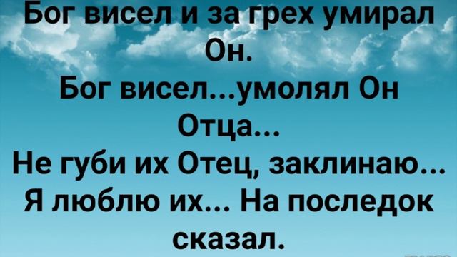 ХРИСТИАНСКИЕ ПЕСНИ ДЛЯ ХВАЛЫ И ПОКЛОНЕНИЯ ПРОСЛАВЛЕНИЯ ВООДУШЕВЛЕНИЯ ЕВАНГЕЛИЗАЦИИ #господь#музыка#христианская_музыка#музика#христианскиепесни#бог#христианскиестихи#любовь#христианство#стихи#песня#песни#иисус#иисусхристос#иисусмойбог#иисус_христос#иисусбог#иисусгосподь#хвалы_и_поклонения#хваление#хвала#прославление "Я ЛЮБЛЮ ИХ... НАПОСЛЕДОК СКАЗАЛ!" СЛОВА, МУЗЫКА: ЖАННА ВОЛКОВА-ВАРЛАМОВА Стихи Жанна Юрьевна Волкова(Варламова) Я не верю в любовь на экране. Я не верю в пустые мечты. Увлечение есть - не реальность. Обольщением занят весь мир. Обольщение есть - не реальность. Обольщению нужен ответ. И секрет есть один о Причастии... С обольщением места там нет! Кровь лилась, истекала на камни... Разрушала весь грех у Скалы. Пригвождён за чужие ненастья... Бог висел там людям на смех. Бог висел весь в ранах...изъянах... Бог висел и, страдая молчал. Лишь одно, умирая, сказал Он... Всю Любовь Я Свою вам отдал! Бог любил и за нас умирал Он. Бог любил и на смерть Он пошёл! За грехи и чужие соблазны в смертный ад добровольно вошёл. Припев: Бог висел и за грех умирал Он. Бог висел...умолял Он Отца... Не губи их Отец, заклинаю... Я люблю их... Напоследок сказал. Кровь лилась, истекала на камни... Разрушала весь грех у Скалы. Пригвождён за чужие ненастья... Бог висел там людям на смех. Бог висел весь в ранах...изъянах... Бог висел и, страдая молчал. Лишь одно, умирая, сказал Он... Всю Любовь Я Свою вам отдал! Бог любил и за нас умирал Он. Бог любил и на смерть Он пошёл! За грехи и чужие соблазны в смертный ад добровольно вошёл. Припев: Бог висел и за грех умирал Он. Бог висел...умолял Он Отца... Не губи их Отец, заклинаю... Я люблю их... Напоследок сказал. 27.12.2019 Жанна Волкова-Варламова