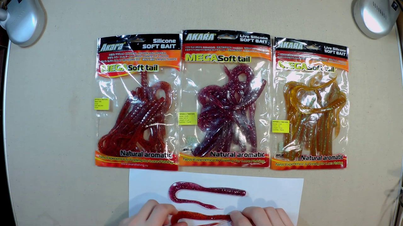 Новые (для меня) приманки от Akara. Крупные твистеры оригинальной формы. Обычный силикон без соли и атрактантов. Ссылка на страницу товара: https://fmagazin.ru/akara/snasti/primanki/myagkie_primanki/silikonovye_primanki/cherv_akara_cw.cw8_103.html