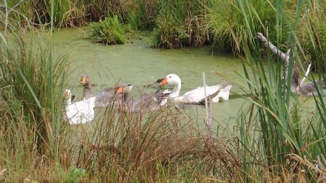 гуси семья купаются