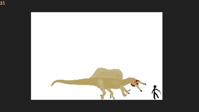 спинозавр против чела с пистолетом