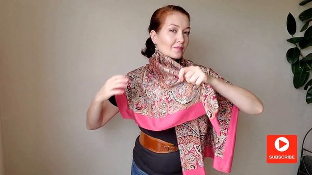 How to wear a big silk square scarf 53”x 53”. Large silk shawl tutorial. Pavlovo Posad Russian Shawl