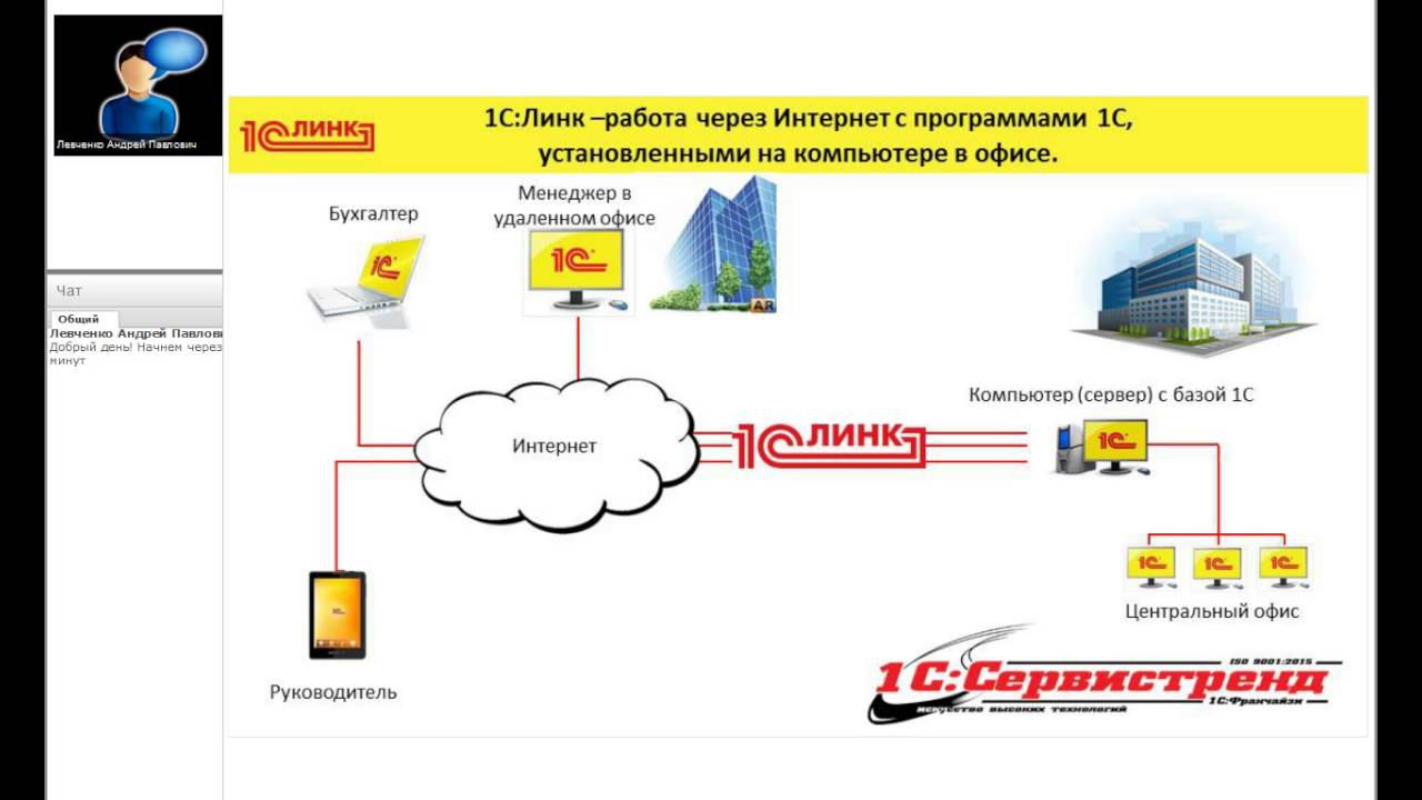 1С:Линк –работа через Интернет с программами 1С, установленными на компьютере в офисе.