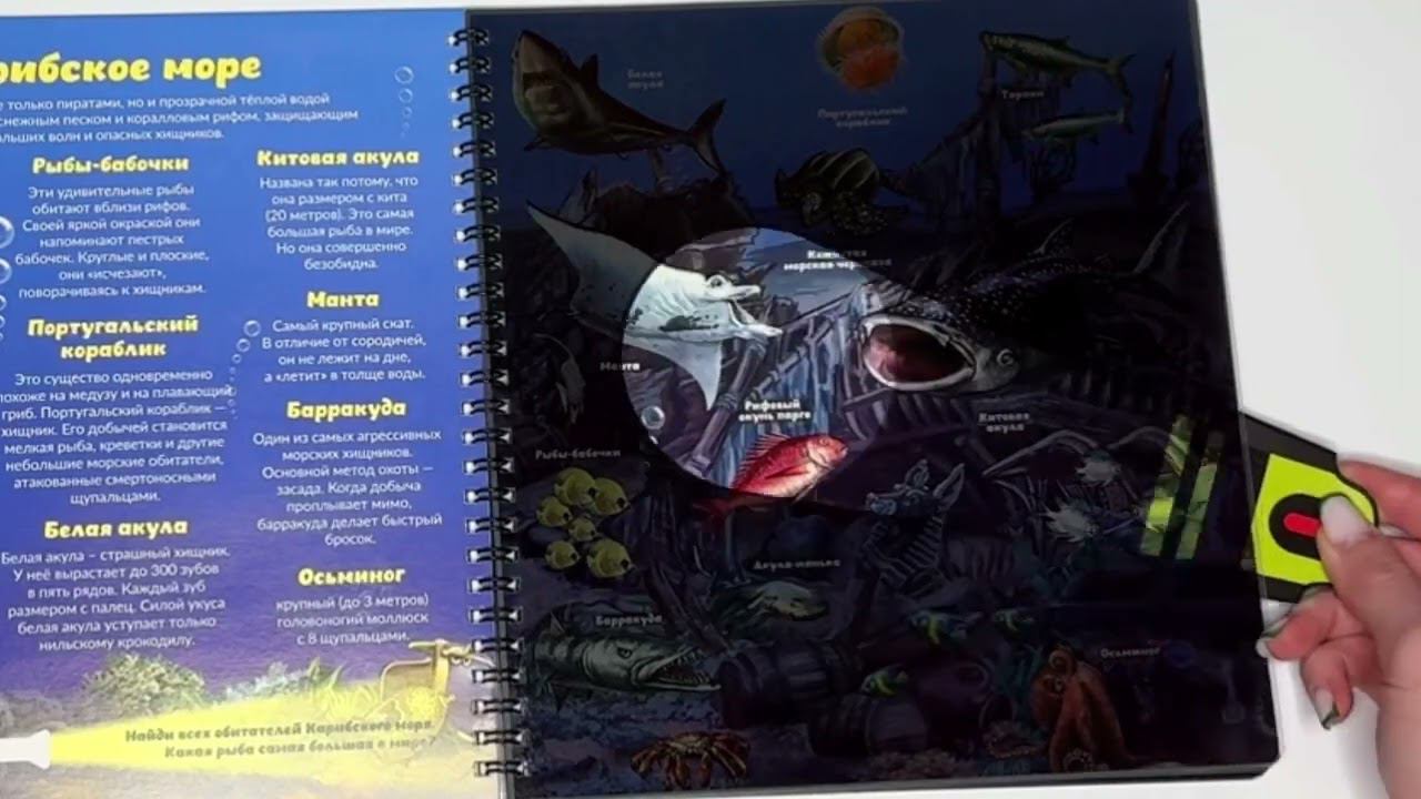 Книга для детей и малышей с фонариком Кто живет под водой?