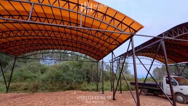 Большой арочный навес с кровлей из сотового поликарбоната
