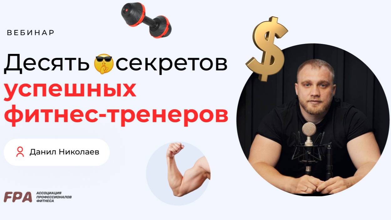 Вебинар, который поможет вам как тренеру прокачать свои скилы, в том числе в продажах и привлечении клиентов. Эфир ведёт Данил Николаев: — основатель Top Trainers Dubai (сервиса по вызову персонального тренера на дом в Дубае); — основатель AQ Trainer (электронного тренировочного дневника персонального тренера); — бывший фитнес-менеджер, элит-тренер, методист World Class; — больше 15 лет в фитнесе. Соцсети Данила Николаева: https://t.me/DanilNikolaev2 https://www.instagram.com/nikolaev_danil__ https://youtube.com/@danil_nikolaev 00:50 Тема вебинара. Визитка ведущего. 04:00 Секрет 1. Поведение в зале. 06:13 Секрет 2. Хвали, а не исправляй! 10:12 Секрет 3. Не будьте безразличными! 12:47 Секрет 4. «Премиальное» поведение. 16:33 Секрет 5. Будь структурным! 19:32 Секрет 6. Фиксируйте запись при клиенте. 21:20 Секрет 7. Контролируйте свои бизнес-метрики. 23:05 Конвертация в платного клиента. 25:32 Количество клиентов и интенсивность посещений. 27:40 Секрет 8. Нарисуйте тренировку графически. 30:01Секрет 9. «Коронное» упражнение. 31:52 Как отвечать на возражение «дорого»? 32:45 Секрет 10. Ведите тренировочный дневник. 36:55 Специальное предложение для студентов FPA и зрителей вебинара. __________ Ассоциация Профессионалов Фитнеса (FPA) - лидер на российском рынке фитнес-образования. С 2000 года в FPA сертифицировано более 25 000 специалистов. Наши выпускники работают более чем в 1000 клубах Москвы, России и стран зарубежья 👉 http://fitness-pro.ru/ __________ Дистанционные программы обучения: – Персональный фитнес-тренер: https://bit.ly/39A06Xr – Фитнес-нутрициолог: https://bit.ly/37oC14n — Инструктор групповых программ: https://bit.ly/3AUq3ip – Детский фитнес: https://bit.ly/34OjT4B __________ Очные программы обучения: – Персональный фитнес-тренер: https://bit.ly/2ONTH2K – Инструктор групповых программ: https://bit.ly/2uFh3Re __________ Мы в соцсетях: ВКонтакте: https://vk.com/fpafpa Telegram-канал: https://t.me/trenerskayaFPA Telegram-чат для тренеров: https://t.me/trenerskayaFPAchat Яндекс.Дзен: https://zen.yandex.ru/fitness_pro_ru