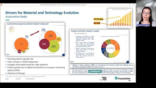 #1 Expert Session of Series »Materials for Electronic Innovations« Speaker Dr. rer. nat. Julia-Marie Köszegi, Head of Group Communication Module Development, Fraunhofer IZM The operating frequencies of almost all high-frequency applications are continuously increasing. This trend raises the question of how the electronic materials used can be optimized to meet the increasing requirements. The expert session will give an insight into current developments and characterization methods. The ongoing miniaturization and advancement of high-frequency electronics poses new challenges to the materials applied in the systems, particularly since operating frequencies of almost all high-frequency applications are continuously increasing. The issue is especially evident in dielectric materials, which include substrate materials such as laminates or ceramics, epoxy mold compounds, underfillers, RDL polymers and many more. A prevailing trend is the development of materials with low permittivity values and, above all, low dielectric losses. The online session will provide an overview over current and future high-frequency applications and their target frequencies and discuss the interaction of the different material classes with guided waves as well as with radiation. The impact of the material properties on interconnects and components will be discussed in depth. Furthermore, characterization methods will be presented which allow for fast screening during material development on the one hand or detailed and application-specific characterization on the other hand. More information here: https://www.izm.fraunhofer.de/en/abteilungen/rf---smart-sensor-systems/working_groups/wg-communication-module-development.html If you don't want to miss any expert sessions in the future, then register here for our newsletter: https://www.izm.fraunhofer.de/en/news_events/newsletteranmeldung.html #electronics s #highfrequency #dielectricmaterials #interconnects #radiation #hardware __________________ Official website: https://www.izm.fraunhofer.de/ Follow us on LinkedIn: https://www.linkedin.com/company/489228/ Follow us on Twitter: https://twitter.com/Fraunhofer_IZM Follow us on Instagram: https://www.instagram.com/fraunhofer_izm/?hl=de Subscribe to our blog RealIZM: https://blog.izm.fraunhofer.de/