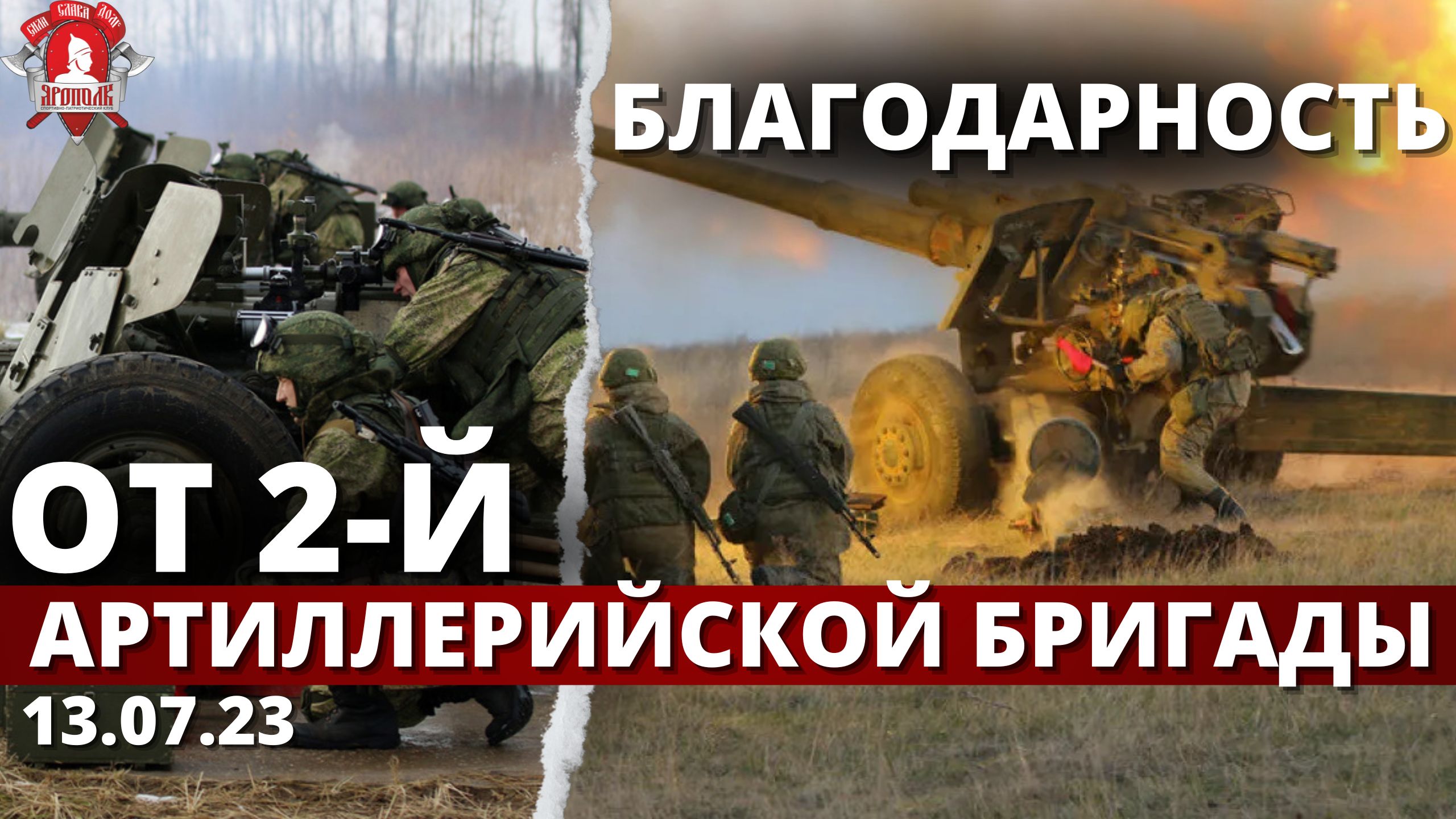 БЛАГОДАРНОСТЬ от 2 АРТИЛЛЕРИЙСКОЙ БРИГАДЫ / ВЕРИМ в ТЕБЯ, РОДНОЙ / клуб ЯРОПОЛК, 07.07.2023 г.