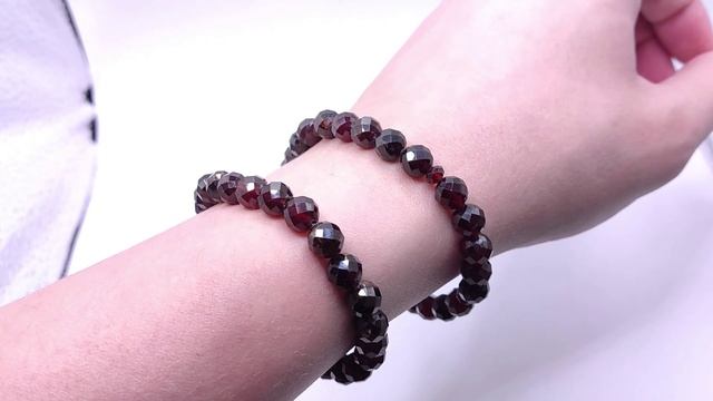 Браслет из бусин: Гранат. На двойной резинке. 100% Природный камень, без облагораживания. Место добычи - Африка. Размер бусин: Гранёные шары ~7.5 мм. Гранёные рондели ~4.5х3 мм. На запястье в обхвате: 1) - 17 см 2) - 18.5 см Б85
