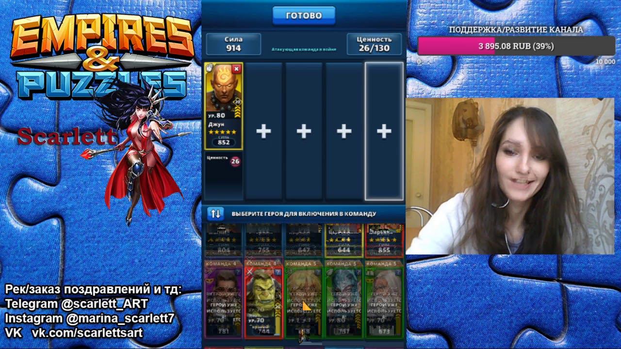 ВОЙНА АЛЬЯНСОВ Империя Пазлов: Эпичная головоломка | Empires and Puzzles Как побеждать на войне? девушка стримит Мои КОНТАКТЫ/По вопросам рекламы: Мой Telegram @scarlett_ART Инста @marina_scarlett7 Поддержать в развитии канала можно по ссылке https://www.donationalerts.com/r/marinascarlett Все Войны альянсов: https://www.youtube.com/watch?v=MyuJdwh-JwQ&list=PLW9kl8rJ_Dfbfp1qHM92n1TH0F_rCTJxK Обзоры героев и не только): https://www.youtube.com/watch?v=NwkGG1u2uVs&list=PLW9kl8rJ_DfZAs4O92GcjCs2hkQSmLNGP Мои Турниры: https://www.youtube.com/watch?v=lehJXTs320M&list=PLW9kl8rJ_DfYyKyuQzL2qFhSOVnvhDqjE Моя группа VK (сувениры/печать на текстиле по мотивам игры) - https://vk.com/scarlettsart СТИКЕРЫ ДЛЯ WhatsApp Empires&Puzzles - https://play.google.com/store/apps/details?id=deomin.dmitriy.whatsApp_Empires_Puzzles По вопросам рекламы: Мой Telegram @scarlett_ART Инста @marina_scarlett7 https://www.instagram.com/marina_scarlett7/
