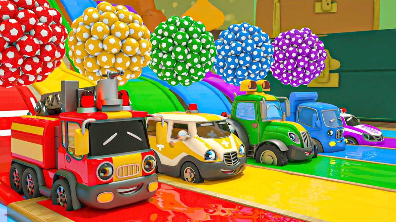 Мультяшки про машинки - Веселые машинки - Разноцветные школьные автобусы и футбольные мячи