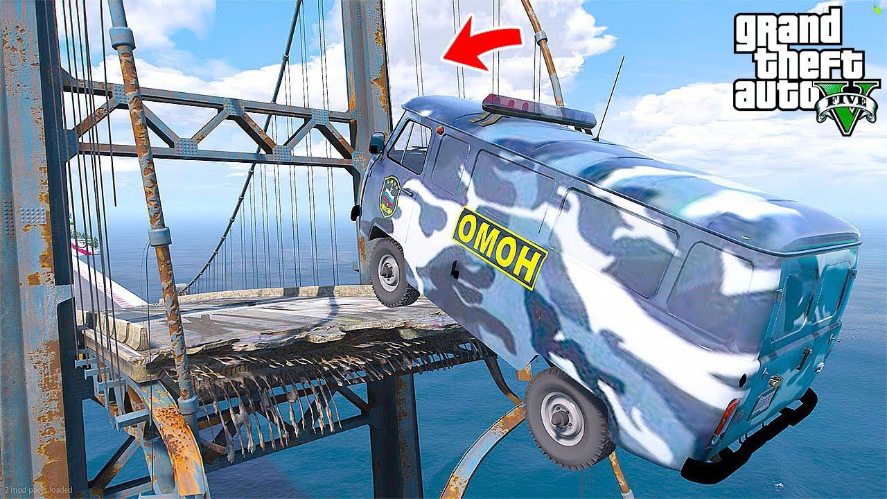 ПЕРЕПРЫГНУЛ РАЗРУШЕННЫЙ МОСТ на ОМОН БУХАНКЕ в ГТА 5 МОДЫ - ЭКСПЕРИМЕНТЫ в ГТА 5