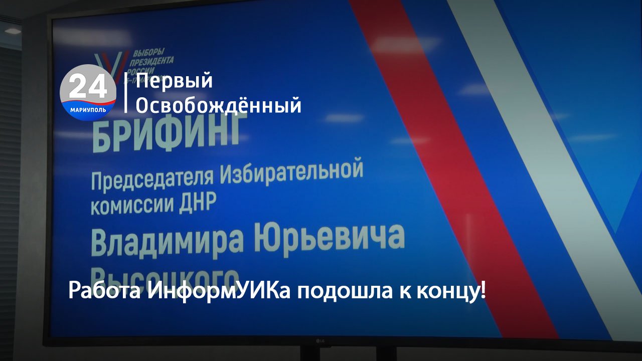 В Донецкой Народной Республике вновь прошел брифинг Председателя избиркома ДНР Владимира Высоцкого. Затронули многие проекты, реализованные на территории республики в преддверии выборов Президента 2024 года. Также, Владимир Высоцкий объявил о завершении информационного проекта «ИнформУИК». Добавил, что в ДНР члены избиркомов обошли более 1 миллиона домов в рамках информирования.