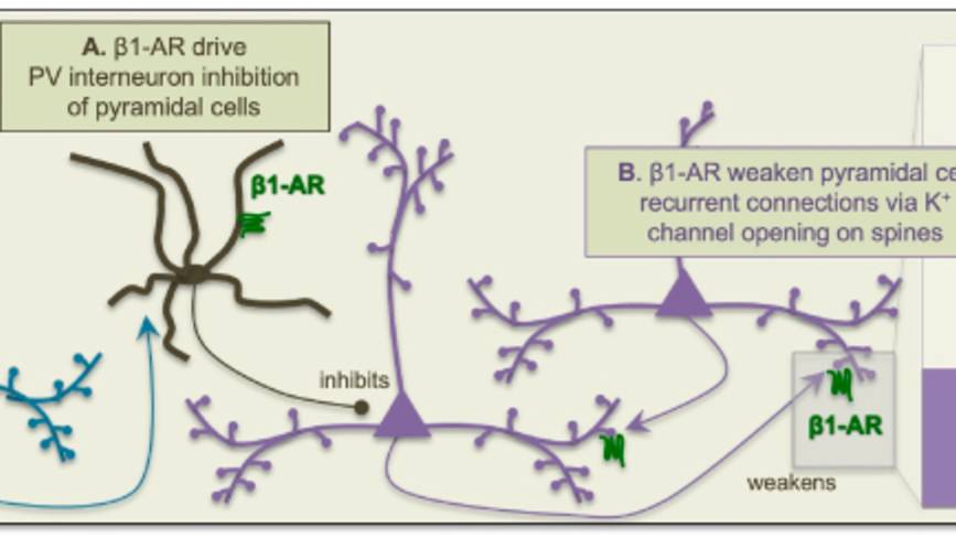 Экспрессия β1-адренорецепторов на ГАМК-ергических интернейронах дорсолатеральной префронтальной коры приматов: потенциальная роль в когнитивной дисфункции, вызванной стрессом Neurobiol Stress. 2024 Mar 15;30:100628. doi: 10.1016/j.ynstr.2024.100628 https://pmc.ncbi.nlm.nih.gov/articles/PMC10973161/