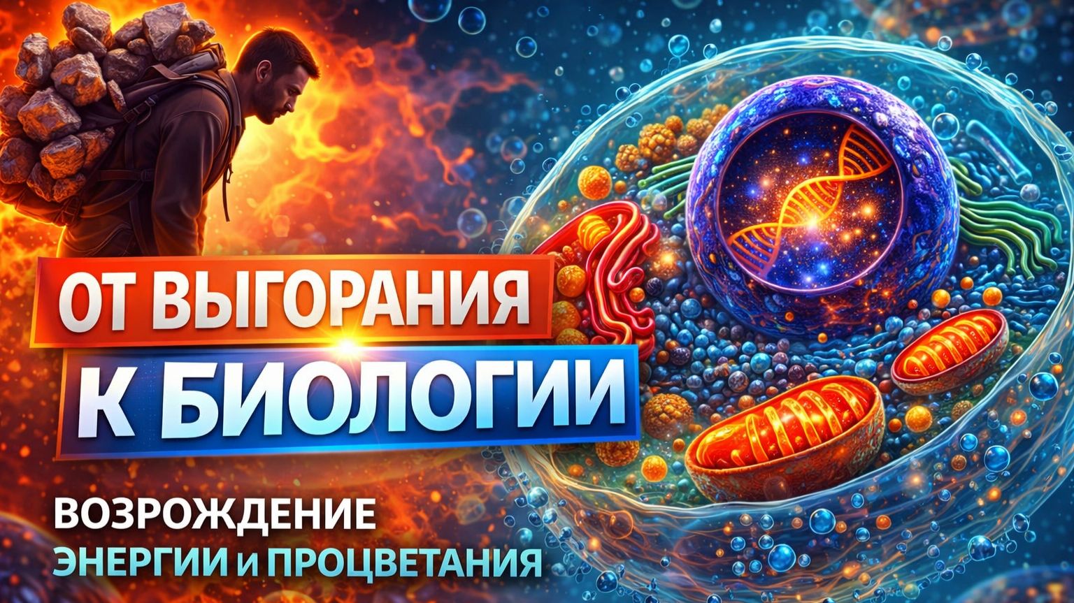 От выгорания к биологии: как восстановить энергию на уровне клеток Почему вы постоянно чувствуете усталость, даже после отдыха? Почему энергия «утекает сквозь пальцы», а привычные способы восстановления не работают? В этом видео мы разбираем реальную причину выгорания — не психологическую, а биологическую. Вы узнаете, как хронический стресс разрушает энергетику организма на уровне клеток, блокирует работу митохондрий и переводит тело в режим выживания. 📌 В этом разборе: Почему усталость — это не лень, а сигнал клеток о дефиците энергии Как стресс перегружает нервную систему и «сжигает» ресурс Что происходит с митохондриями и почему энергия перестаёт вырабатываться Почему сон и отпуск не решают проблему хронического истощения Разница между стимуляцией (кофе, энергетики) и настоящей регенерацией Как запустить восстановление организма на глубоком уровне Роль кислорода и биохимии в возвращении энергии ⚡ Главная идея: Энергия — это не мотивация. Это биология. И если «внутренняя батарейка» сломана — её нужно не заряжать, а восстанавливать. 💡 Это видео для вас, если: нет сил и мотивации постоянная усталость и «туман в голове» ощущение, что живёте на минималках хотите вернуть ясность, фокус и энергию 🔥 В конце вы поймёте, как перейти от состояния выживания к состоянию ресурса, где: есть энергия на действия возвращаются амбиции появляется ясность мышления тело и мозг работают как единая система