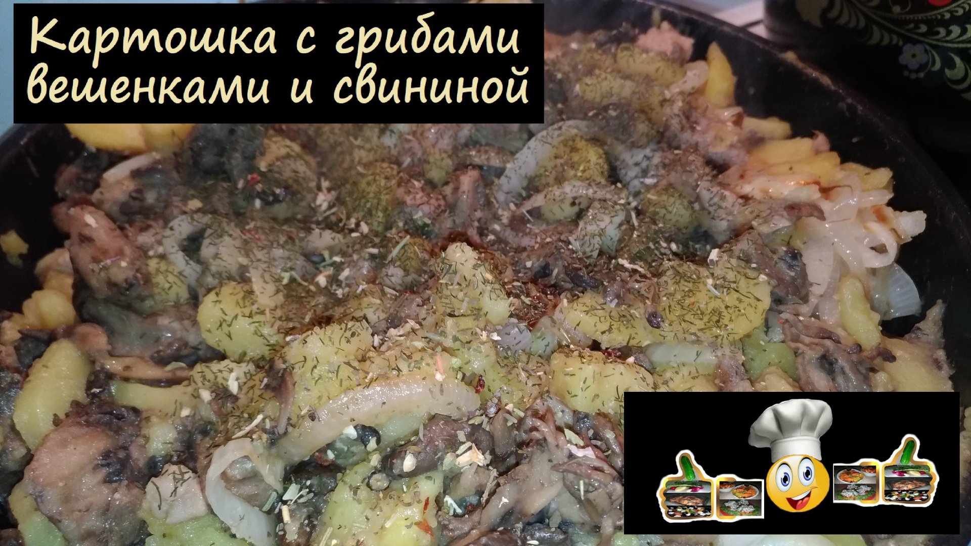 Картошка с грибами вешенками и свининой/На второе/Рецепт № 118