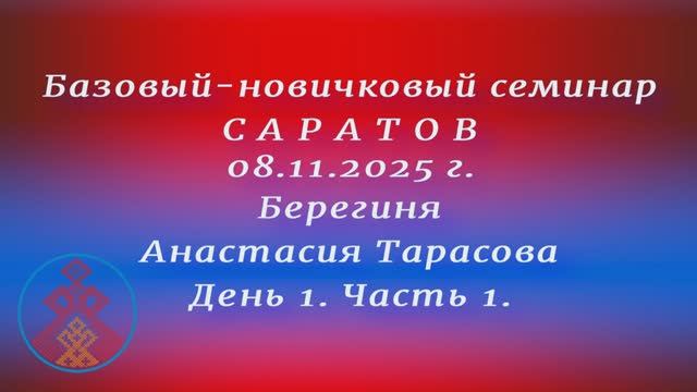 08.11.2025. Базовый - новичковый семинар г.Саратов. д1.ч.1 Берегиня Анастасия Тарасова.