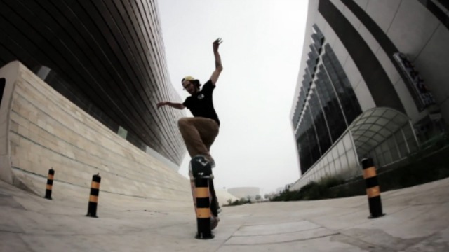 На скейте по песку и призрачному городу.