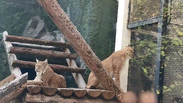 Интересные, экзотические животные в Московском зоопарке. Рыси отдыхают. Забавные киски.