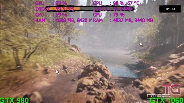 GTX 980 vs GTX 1060 Test in 7 Games (i5 6600k) Games: Project Cars Watch Dogs 2 - 01:10 Grand Theft Auto V - 02:32 Far Cry Primal - 04:44 Battlefield 1 - 05:56 Ghost Recon Wildlands Beta - 07:47 Rise of the Tomb Raider - 08:57 System: Windows 10 Intel i5 6600k 4.6Ghz GTX 1060 6Gb 1506/8000Mhz GTX 980 4Gb 1139/7010Mhz 8Gb RAM Settings Ultra, 1080p