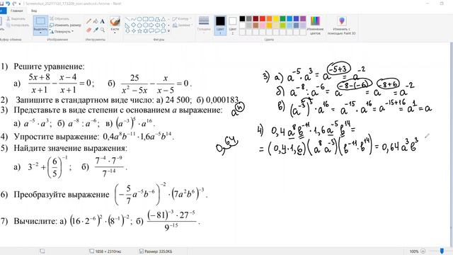 Разбор аналога контрольной работы по теме" Степень с целым показателем. Стандартный вид числа"