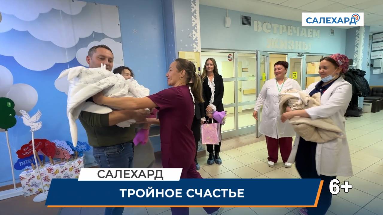 Счастье в кубе! Тройняшки, родившиеся в Салехарде, сегодня выписаны домой. Они появились на свет 18 сентября в преддверии Дня многодетной семьи. У лабытнангцев Лады и Александра родилась тройня. Для перинатального центра Салехарда это четвёртые тройняшки с момента его открытия. Первой появилась София, потом Виктория, третьим стал Кирилл. Дома сестричек и братика ждут ещё Злата, Денис и Ростислав. Поздравить многодетных родителей в этот радостный день пришли близкие и друзья. Представители салехардского отдела ЗАГС и одной из страховых компаний вручили памятные подарки, пожелали здоровья малышам, сил и терпения родителям.