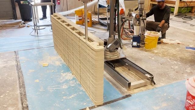 Таймлапс 3D-печать фрагмента стены с помощью цементного принтера