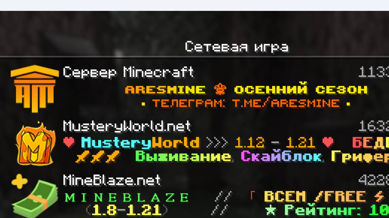 сайт сервера: https://aresmine.ru ip сервера: fun.aresmine.me