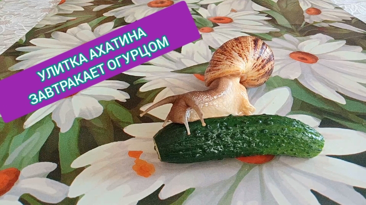 Улитка Ахатина завтракает огурцом