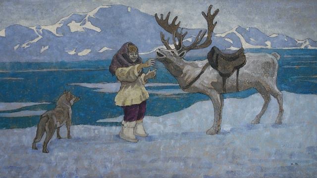 ПУТЕШЕСТВУЯ ПО ТУНДРЕ ПРЕДСЕДАТЕЛЬ ОБЪЕДИНЕНИЯ ХУДОЖНИКОВ "РУССКИЙ СЕВЕР" ВАЛЕРИЙ КОМАРОВ НЕ РАЗ НАБЛЮДАЛ ИНТЕРЕСНЕЙШИЕ МОМЕНТЫ ЖИЗНИ. ОЛЕНИХИ ИНОГДА ОТКАЗЫВАЮТСЯ ЗАБОТИТЬСЯ О СВОИХ МАЛЫШАХ И ВОСПИТАНИЕМ И КОРМЛЕНИЕМ ЗАНИМАЮТСЯ САМИ ОЛЕНЕВОДЫ. И ПОЯВЛЯЕТСЯ "АВКО" - ОЛЕНЬ, ВЫРАЩЕННЫЙ ЧЕЛОВЕКОМ. ПОТЕШНО - ЭТОТ БЕЛЫЙ ОЛЕНЁНОК ВСЕГДА ОКОЛО ЧУМА, ЗАГЛЯДЫВАЕТ В НЕГО И СОВСЕМ РУЧНОЙ. МНЕ МНОГОЕ ПРИХОДИЛОСЬ ВИДЕТЬ - ЮРКОВАНИЕ "БЫКОВ", ПОЧИНКУ САНЕЙ, ВОЗВРАЩЕНИЕ ИЗ ОСНОВНОГО СТАДА ОЧЕРЕДНОГО ДЕЖУРНОГО ЗА СТО КИЛОМЕТРОВ. А С НИМ МЕШОЧЕК С ГУСИНЫМИ ГРОМАДНЫМИ ЯЙЦАМИ. ИЮНЬ, А В ОЗЁРАХ - ЛЁД. И УМЫВАЛСЯ Я ЛЕДЯНОЙ ВОДОЙ... МНОГО НОВОГО Я УВИДЕЛ В ЭТОЙ В ЭТОЙ ЗАГАДОЧНОЙ СЕВЕРНОЙ ЖИЗНИ... «В начале восьмидесятых годов московские художники, любящие Русский Север и собирающие материалы там для своих картин, решили объединиться. Валерий Комаров на собрании комиссии по памятникам истории и культуры предложил создать при союзе художников группу по теме Русский Север. Его поддержали художники Виктор Кудрин, Борис Кельберер, Артём Попов и другие. Курировал комиссию в то время монументалист Артемьев. Всем очень понравилась идея и единогласно утвердительно проголосовали. Было создано объединение художников Русский Север. Создателем, руководителем и председателем объединения художников явился Валерий Комаров. Заместителем стал Артём Попов, который до самого конца своей жизни был верным помощником и соратником председателя объединения Валерия Комарова. И мы начали свою деятельность, отправляясь в отдел кадров союза, где оформляли командировки на Русский Север.Они в то время оплачивались - суточные, дорожные билеты... А в документе - гербовая печать и строка - оказывать всяческое содействие. И мы устремлялись к деревянным дворцам холодгого Севера, от которых исходило тепло, добрая мощная энергия их творцов. И манила, звала неведомая сила создателей уникальных творений. Конечно, мы видели, что всё рушится и уходит красота, которая, погибая сама, не спасла этот Мир. Ещё одного уничтожающего века она не выдержит. Мы увидели расцвет, благоденствие, сменившееся упадком и разрухой. Все понимали, что не следует мириться с тем, что уникальный облик северной деревни утрачен, что необходимо возродить его красоту и жить этим! Те, кто возвёл Русский Север, когда сюда пришли, не имели ничего - только любовь. Ими были созданы неповторимые художественные формы, которые несут в себе глубокое духовное содержание. Образ Русского Севера настолько велик, что не уступает ни в чём западноевропейской культуре. И я, как и другие художники, годами приезжал вдохнуть воздух Севера, проникнуться тем духом творчества, что и северные мастера. Ведь, душа, дыханье, дух и воздух - всё едино... И домой возвращались художники одухотворёнными. И в мастерских складывали из отдельных кусочков, мотивов, этюдов, зарисовок нечто цельное - Гимн Русскому Северу... Создатель, руководитель и председатель объединения художников Русский Север Валерий Комаров.»