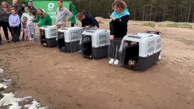 Фонд друзей балтийской нерпы вернул в дикую природу пятерых серых тюленей после реабилитации.