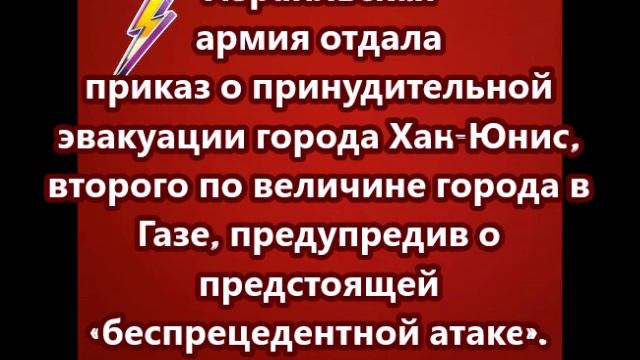 Израильская армия отдала приказ о принудительной эвакуации города Хан-Юнис