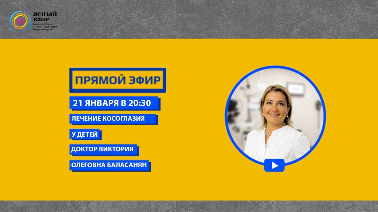 #офтальмолог #офтальмологмосква #врач #косоглазие #лечение 21-го января в 20:30 состоялся #прямой #эфир детского врача-офтальмолога, детского офтальмохирурга, рефракционного хирурга, К.м.н., Виктории Олеговны Баласанян. В прямом эфире #врач-офтальмолог, #детский #офтальмохирург, ответит на вопросы о косоглазии. По всем интересующим вопросам и для записи на приём #звоните по номеру: ☎️+7(495)185-01-82(#Москва) ☎️+7(4012)615610(#Калининград) Мы в соцсетях: Facebook https://goo.gl/rOnxDy Вконтакте https://goo.gl/bM5OT2 Instagram https://goo.gl/xUSm2h