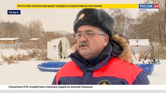17.12.2020 - сюжет на ГТРК _Калуга__ Спасатели МЧС отработали спасение людей из ледяной полыньи
