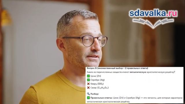 Соли: определение, состав, номенклатура. Средние соли как продукты замещения атомов водорода в кислоте на металл. Типы кристаллических решеток: ионные, атомные, молекулярные, металлические. Зависимость физических свойств веществ от типа кристаллической решетки. Подготовка и обучение школьников с помощью ИИ: https://sdavalka.ru/. Как работать? - Зарегистрируйтесь. - Найдите нужный предмет и класс. - Изучите материалы по урокам: текст, понятный ученикам, сжатый видеоурок с ИИ. - Пройдите тренировочный тест (можно проходить бесконечно, для усвоения материала). - Уверены, сдавайте экзаменационный тест! - И так по каждой теме. - В конце итоговый тест. - Сдадите все - сдадите любой экзамен! Системы дистанционного образования, контент: https://ecre.ru/ Подготовка для ВУЗов и СУЗов: https://mexam.ru/