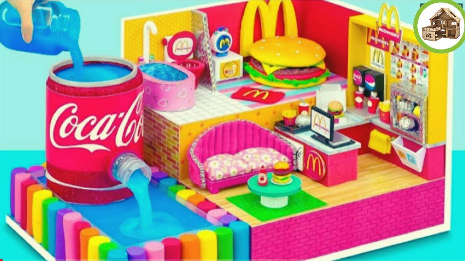 Миниатюрная вилла для кукол есть mcdonalds, бургер и бассейн с кока-колой из картонна #44