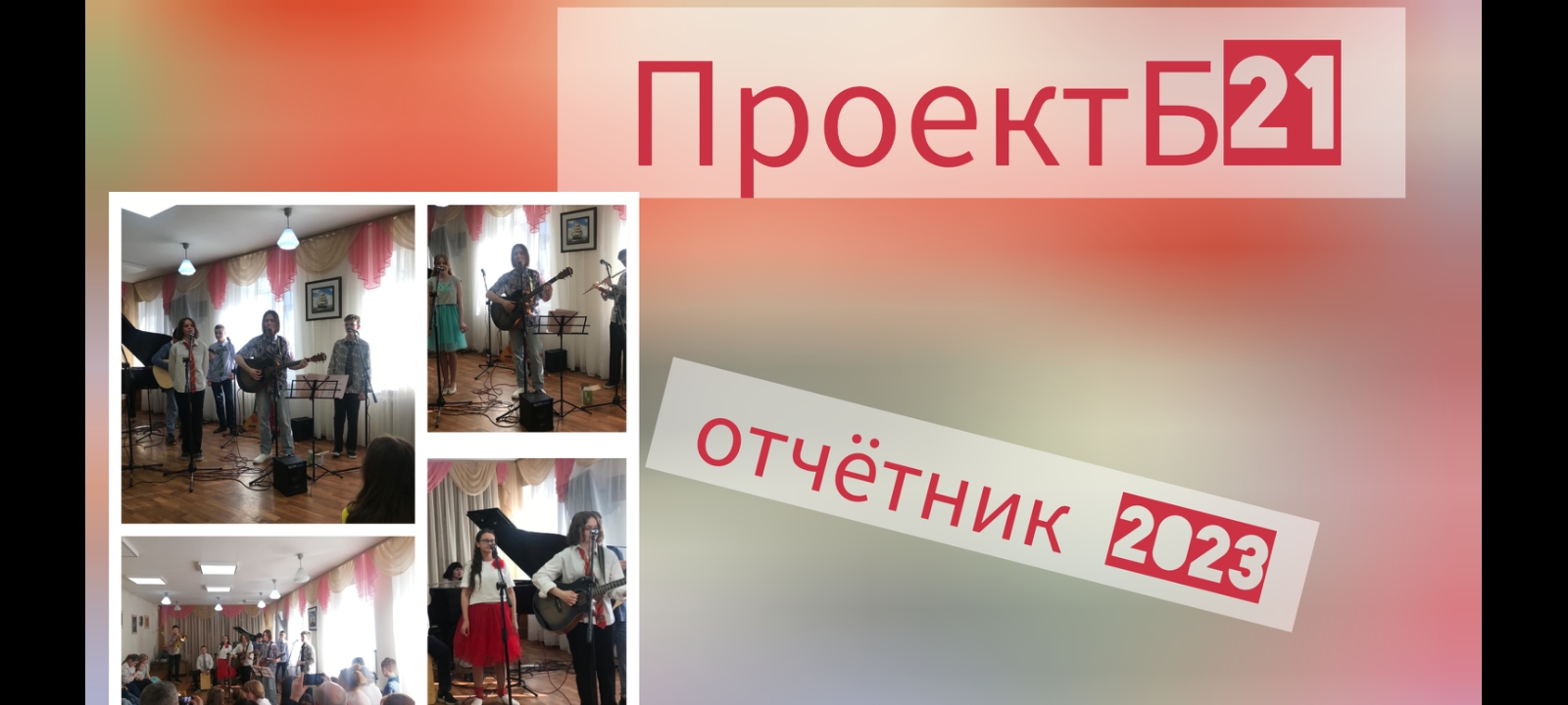 Ссылки на группы Проекта Б21 https://vk.com/b21band https://rutube.ru/plst/118964 Проект Б 21 - объединение творческих детей, желающих, кроме основных занятий в Детском доме культуры им. Д.Н.Пичугина, творить что-то интересное, необычное, открывающее новые грани таланта. Дружная команда детей проводит квартирники, создаёт познавательные и развлекательные видео, выпускает стенгазеты о творчестве музыкантов. Первая встреча объединения проходила в 21 кабинете, где есть уютный балкончик. Так родилось название Проект Б21 #проектб21квартирник #новосибирскддкаичугинапроектб21дхс #композиторнатальяокуневапроектб21 ДДК им. Д. Н. Пичугина всегда открыт для Ваших талантливых детей и новых проектов! https://ddk-pichugina.ru/ ул. Богдана Хмельницкого, 70/1 Администрация. Детская хоровая студия «Дружба». Группы интеллектуального развития детей (ГИДы) Филиалы: ДДК им. Д. Н. Пичугина ул.А.Невского,45 Студия ОРНИ, Студия Хореографии «Вдохновение», Групповые занятия для детей с ОВЗ ДДК им. Д.Н.Пичугина ул.Б. Хмельницкого,64 Студия Прикладного, Изобразительного и Технического творчества