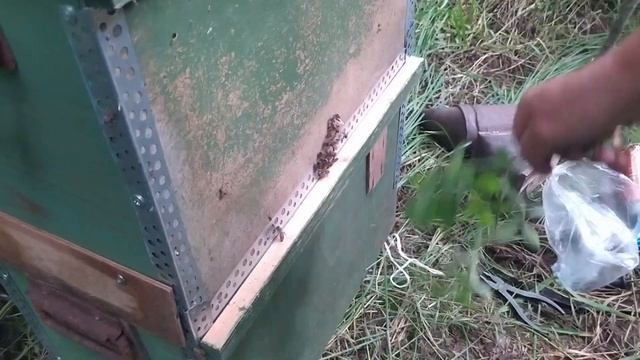 Поймали пчёл в лесу Ловим пчел черпаком