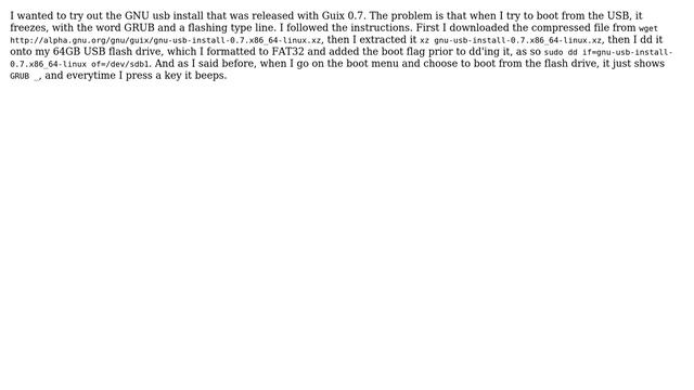 Unix & Linux: GNU Guix usb-install freezes at GRUB after boot