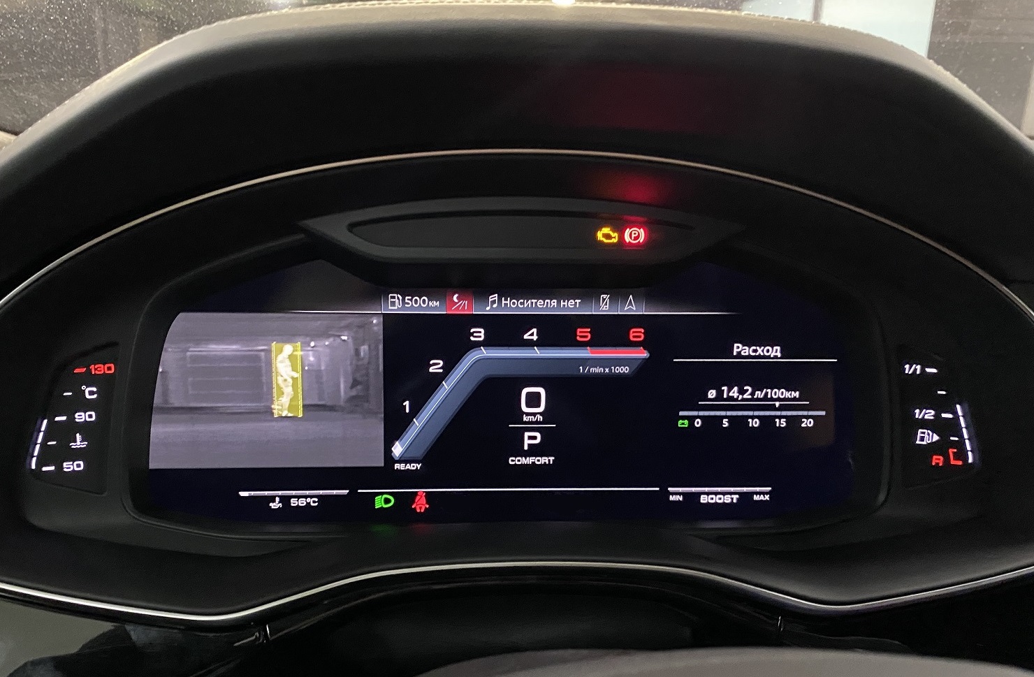 -Night Vision или ассистент ночного виденья Система ночного видения на Audi Q7FL / Q8 4M помогает водителю при движении ночью, отображая тепловое изображение окрестностей на цифровой приборной панели. Люди и крупные дикие животные выделяются на экране желтым цветом. В зависимости от расстояния, если система определяет, что существует потенциальный риск, маркировка меняется на красный, появляется предупреждающий треугольник и звучит предупреждающий сигнал. Предупреждение может отображаться на дисплее. Выделенная фигура также подсвечивается 3 короткими вспышками света фар. Встроенная тепловизионная камера обеспечивает водителю область видимости, значительно превышающую область освещения фарами дальнего света. Качество изображения, передаваемого тепловизионной камерой на дисплей информационной системы водителя, зависит от погодных условий. Система включается автоматически в темноте, если ближний свет включен или огни находятся в автоматическом режиме.