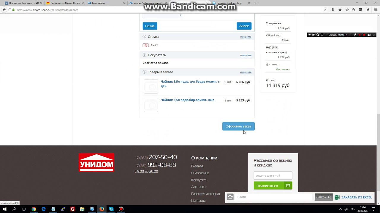 оформление заказа оптовый раздел
