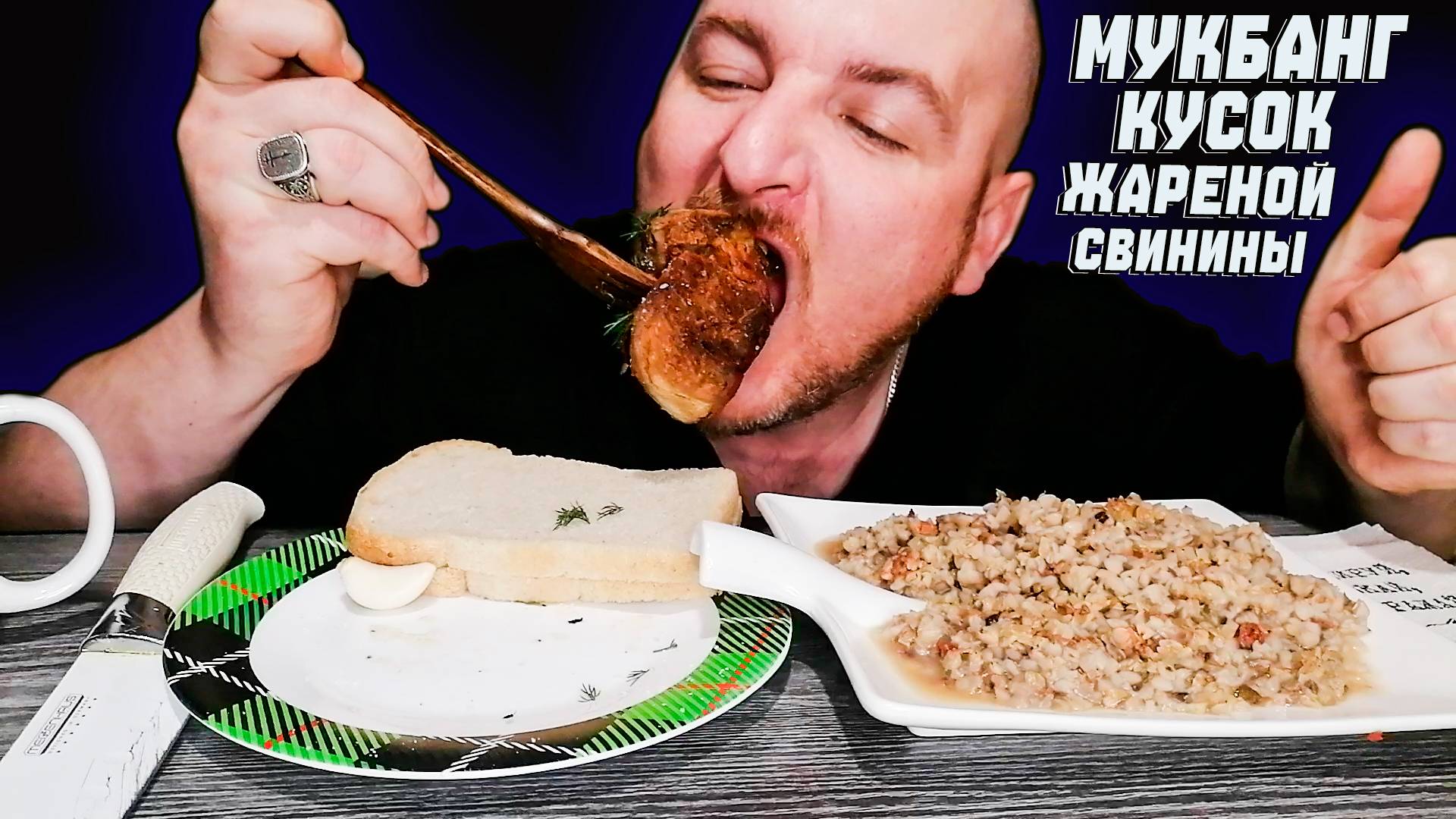 МУКБАНГ|ОБЖОРЫЧ|ГРЕЧКА С ГРИБАМИ|КУСОК ЖАРЕНОЙ СВИНИНЫ