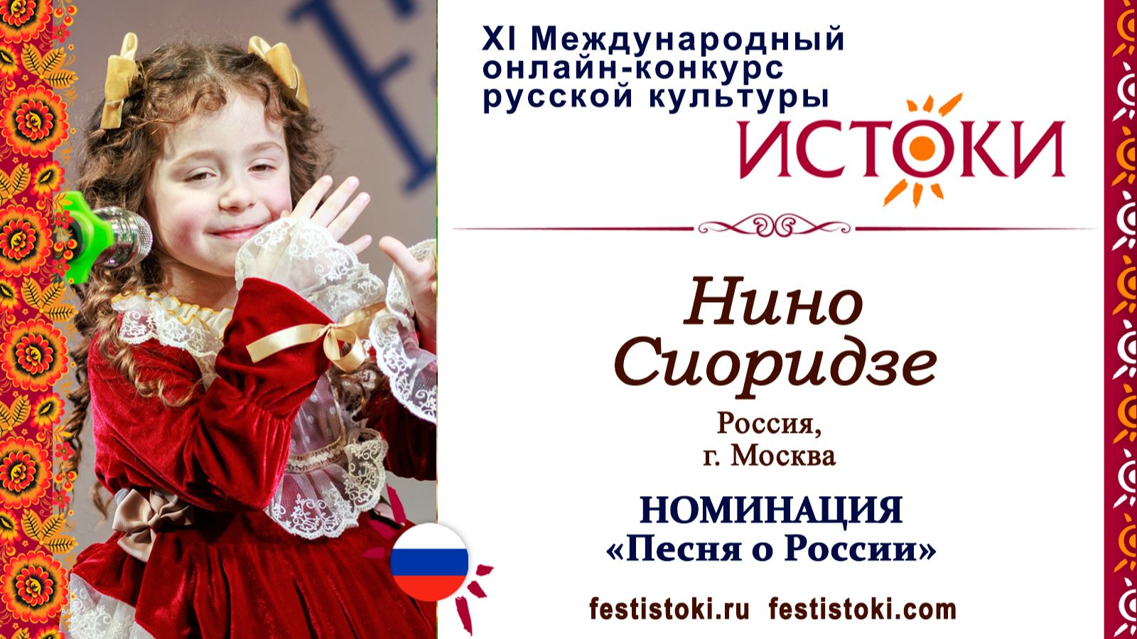 Участник ХI Международного онлайн-конкурса русской культуры "Истоки". Номинация "Песня о России". Песня "Пастушья песенка". Слова К. Алемасовой. Сайт: festistoki.ru / festistoki.com E-mail: festistoki@mail.ru