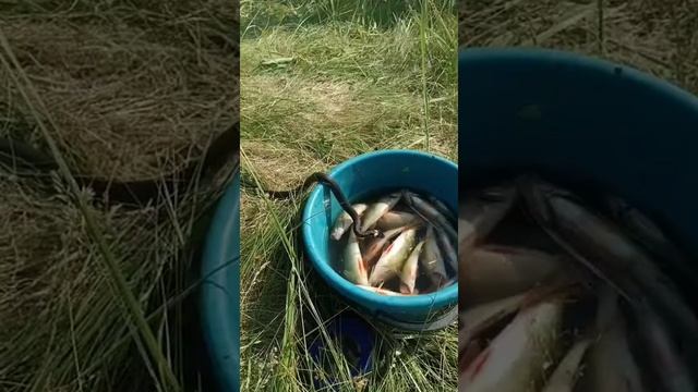 Змея ворует рыбу