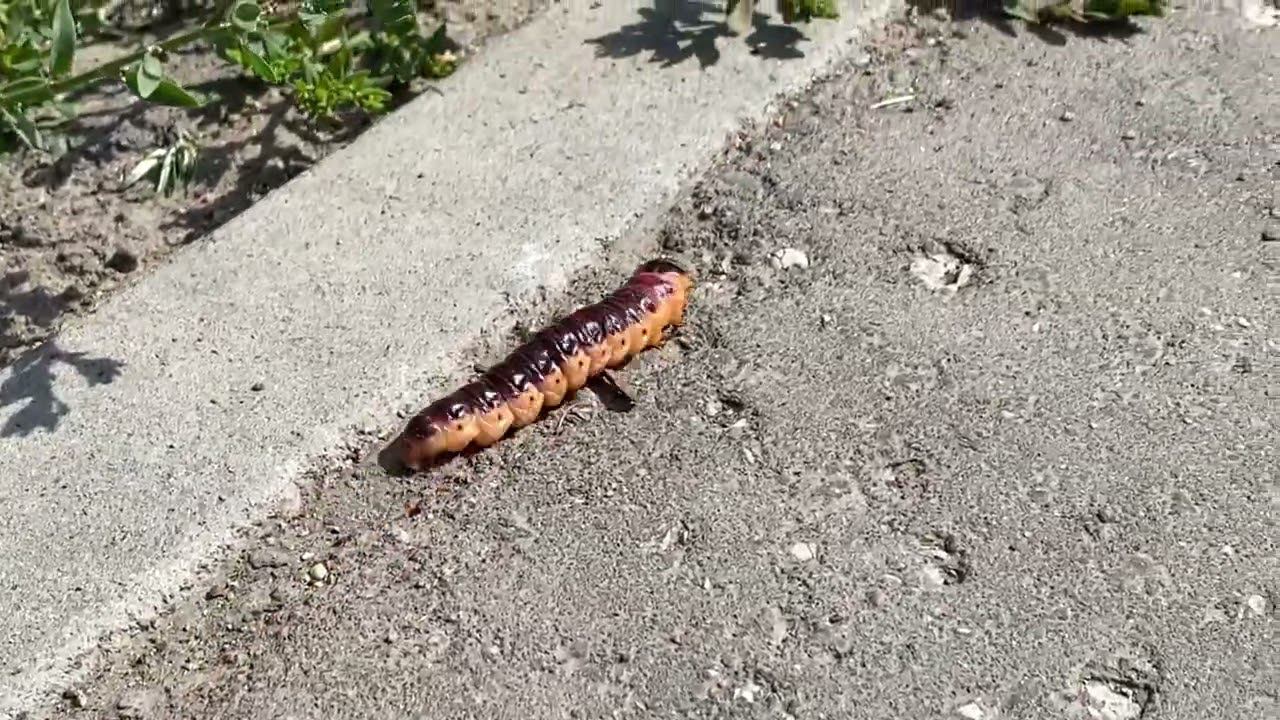 Большая гусеница, приложил руку для оценки размеров ее.