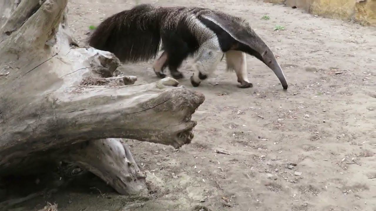 Пара гигантских муравьедов прибыла в Новосибирский зоопарк в 2020 году из зоопарка города Нюкеебинг-Морс (Дания). Наших гигантских муравьедов зовут Калле и Майя. Пара была сформирована несколько лет назад, у них уже рождались детеныши. 11 марта 2022 года родился детеныш краснокнижного гигантского муравьеда у нас в зоопарке. Их купают под душем в соседней комнате. Гигантский муравьед — самое крупное животное в отряде неполнозубых, длина его тела составляет 110-130 см. У него нет зубов, а язык достигает в длину 60 см — он нужен муравьеду для добычи корма. Животное разрушает термитники и муравейники, и языком, смоченным липкой слюной, быстро собирает насекомых. Кормят муравьеда однородной смесью фруктов, геркулеса, личинок насекомых, собачьего корма, торфа и других компонентов.
