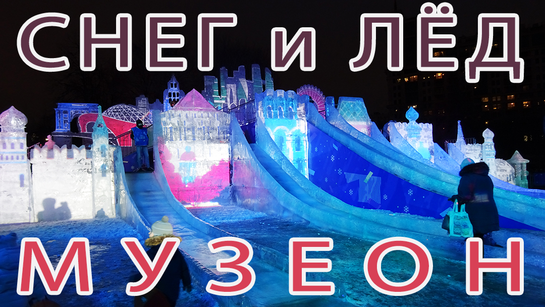 Фестиваль Снег и лед в Москве 2023. Ледяные скульптуры и большие горки в парке Искусств Музеон.
