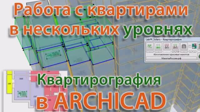 Квартирография в ARCHICAD - работа с двухуровневыми квартирами. LABPP_Solaris - квартирография для ARCHICAD позволяет записывать в маркер квартиры помещения, находящиеся на разных этажах. Показаны два варианта - в 3d и в 2d окнах - как удобно управляться с многоуровневыми квартирами. Вы можете заказывать дополнительные модули автоматизации для этой программы.